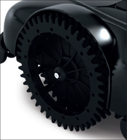 Nowe, opatentowane przez producenta, samopoziomujące się, przednie koła, umożliwiają koszenie na nierównych powierzchniach – każde z kół porusza się niezależnie. W standardzie są również nowe, opatentowane przez ZCS koła tylne, ze specjalnym bieżnikiem wykonanym z elastycznej gumy, dopasowującej się idealnie do każdego typu nawierzchni. Dodatkowo można założyć metalowe kolce, co poprawie przyczepność bardzo stromych i śliskich miejscach.